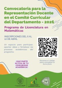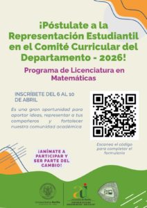 Se invita a docentes y estudiantes a postularse para formar parte del Comité Curricular del Departamento 2026, un espacio clave para participar en la toma de decisiones académicas y el fortalecimiento de los procesos educativos.