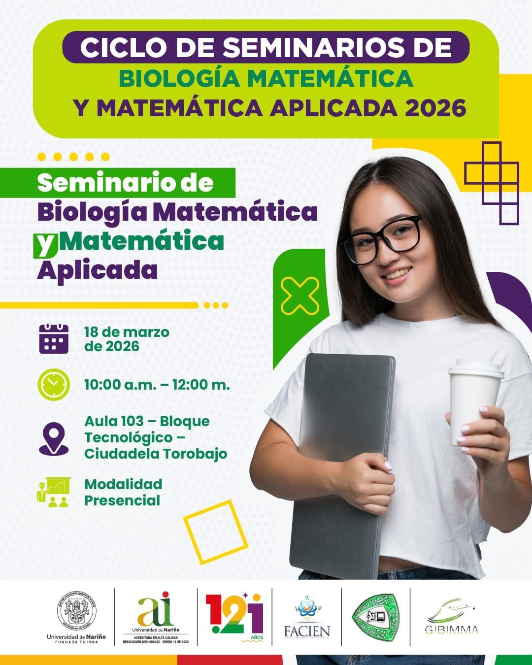 A través de sus espacios académicos de investigación y formación, invita cordialmente a estudiantes, docentes e interesados a participar en la tercera sesión del Ciclo de Seminarios de Biología Matemática y Matemática Aplicada 2026.